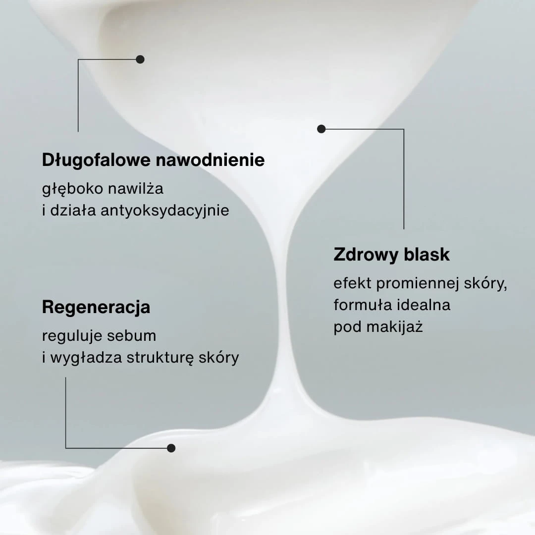Długofalowe nawodnienie: Dzięki zawartości skwalanu i niacynamidu (po 2%) utrzymuje równowagę wodno-lipidową przez wiele godzin.