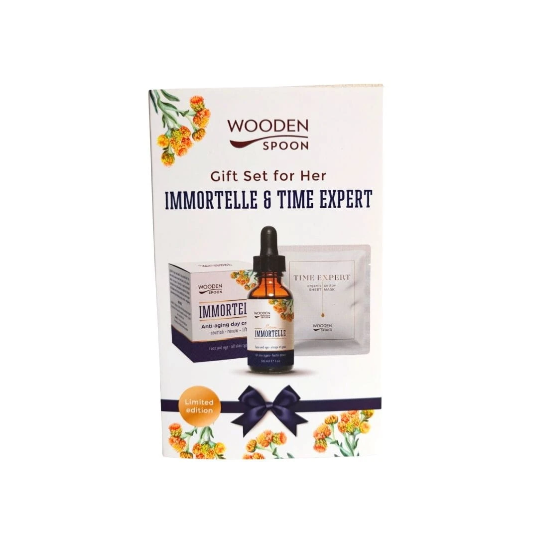 Zestaw Immortelle to kompletny, warstwowy rytuał pielęgnacyjny zamknięty w eleganckim pudełku prezentowym. Został stworzony z myślą o skórze, która zaczyna tracić jędrność, elastyczność i świeży wygląd — oraz o osobach, które chcą pielęgnować ją świadomie i naturalnie.