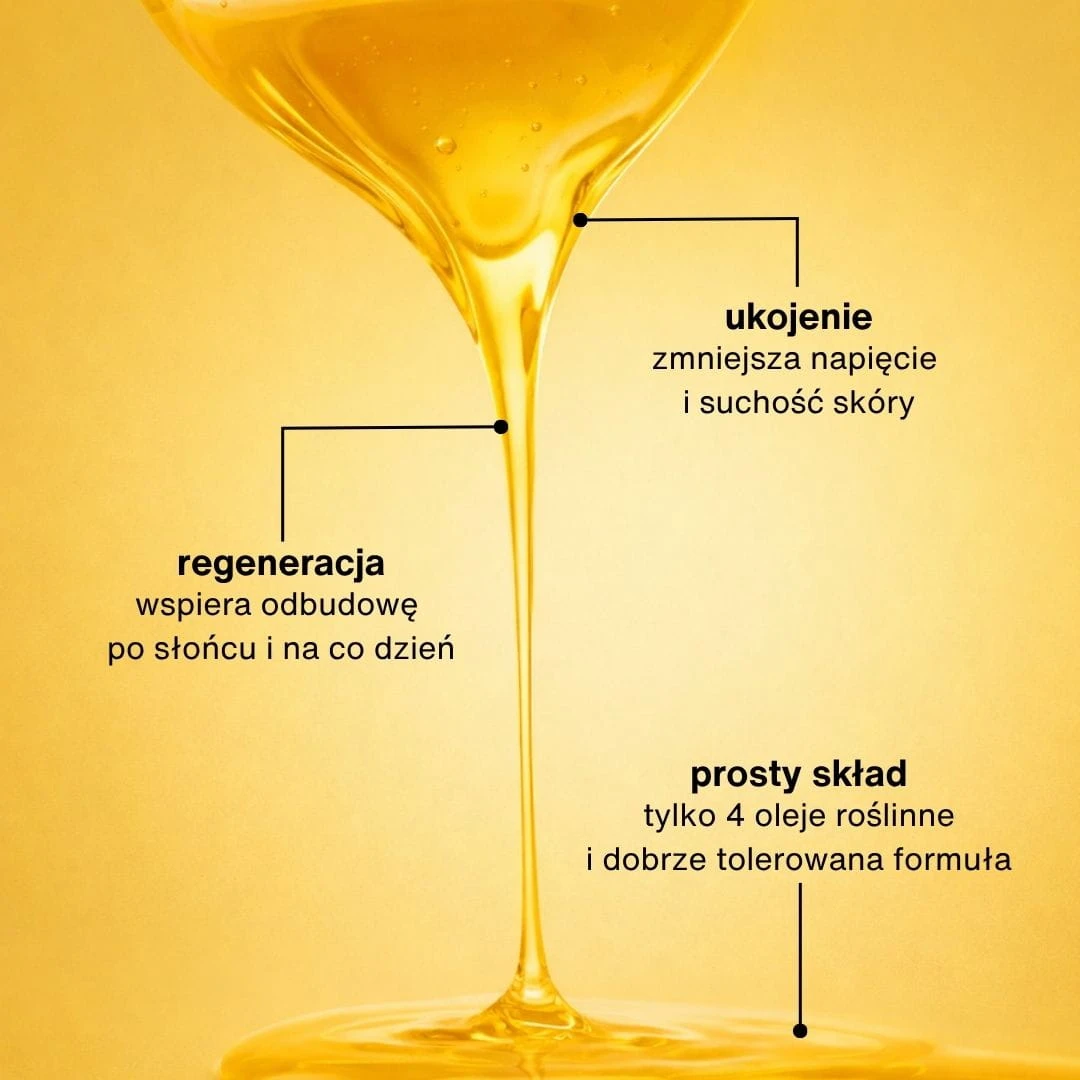 Łagodzi i przywraca komfort. Oleje roślinne pomagają zmniejszyć uczucie ściągnięcia i suchości po ekspozycji na słońce.