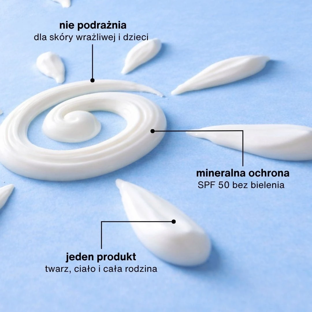 Mineralny SPF 50 dla skóry wrażliwej i całej rodziny. Nie bieli, nie szczypie, nie przeciąża – ochrona, którą chce się stosować codziennie.